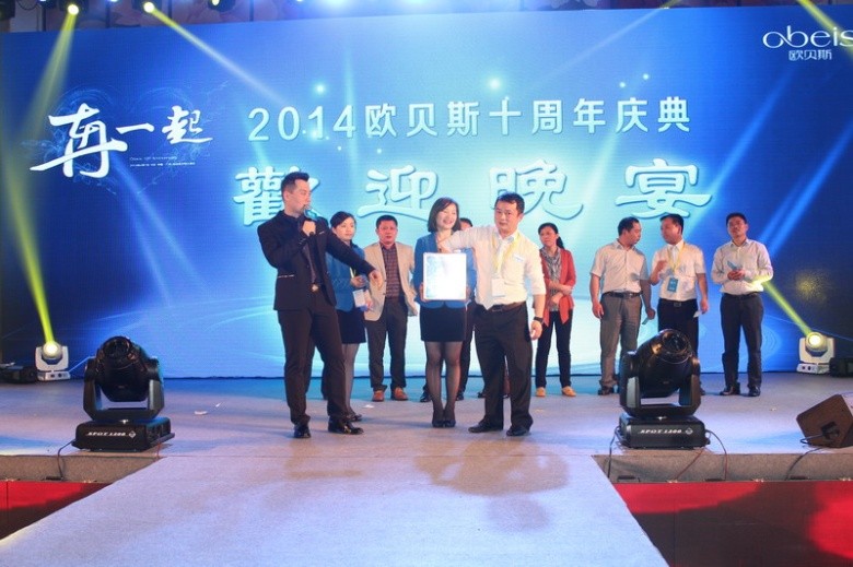芳華十載,共舞未來。2014年4月8日,歐貝斯“我們在一起”十周年慶典在廣州白云萬達希爾頓酒店隆重舉行。來自全國各地近300家代理商、100家供應商出席了本次慶典。